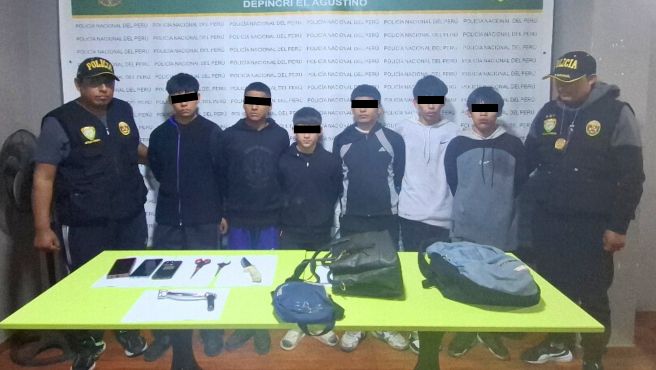 Agentes del Escuadrón Verde – Grupo Terna capturaron en flagrancia a seis menores de edad integrantes de la banda criminal Los Chavitos de Santoyo, cuando intentaban asaltar un bus de transporte público en El Agustino, armados con cuchillo, tijeras, desarmador y un fierro.